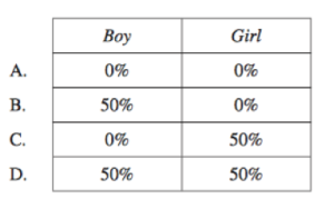 Which row in the table shows the probability of colourblindness in the boy and the girl?