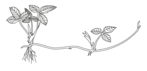 A strawberry plant will send out over the ground runners which will take root and grow a new plant as shown.